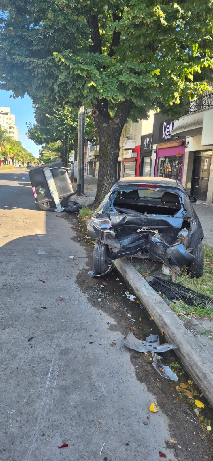 La situación se volvió crítica cuando el vehículo perdió completamente el control al llegar a la esquina de 13 y 35. En cuestión de segundos, el automóvil terminó impactando contra distintos elementos en la vía pública y provocando daños materiales considerables.